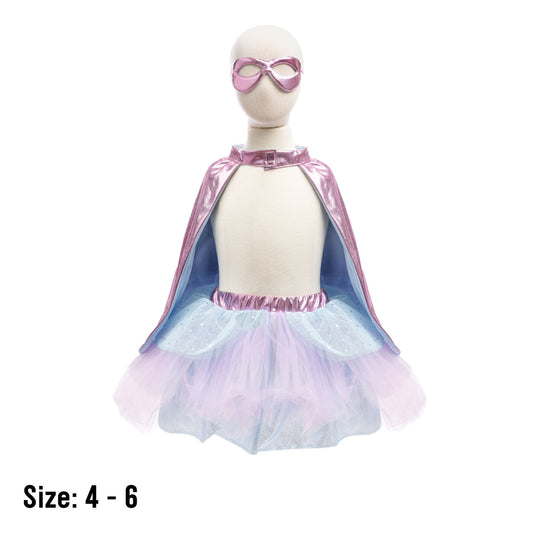 Super Duper Tutu, with Cape & Mask - Metallic Pink/Light Blue