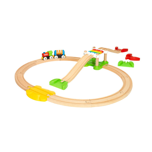 Railroad play with trains, tracks, stations, bridges, tunnels, and more.