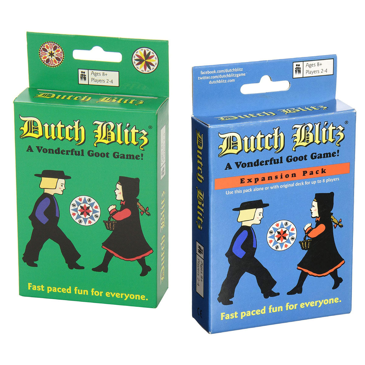Dutch Blitz is easy to learn. The simplest explanation of how to play: It’s super-competitive head-to-head speed solitaire.
