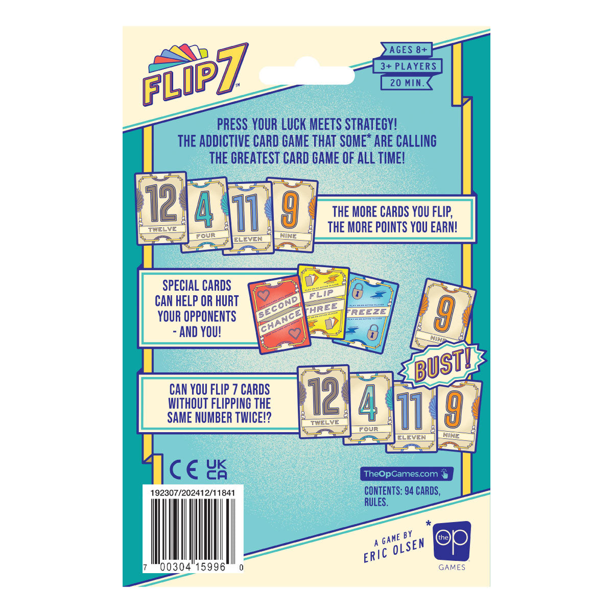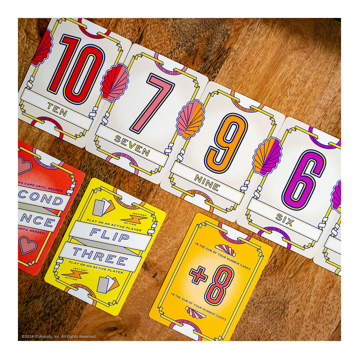 This isn't just any deck of cards… In Flip 7™ there's only one 1 card, two 2's, three 3’s, etc. plus a bunch of special cards that can score you extra points, give you a second chance, or freeze you or your opponents in your tracks.
