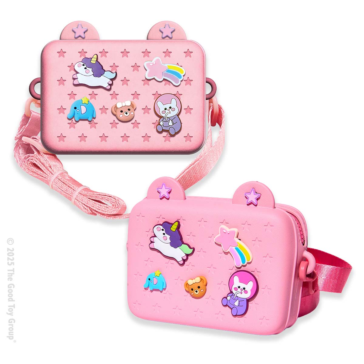 Perfect for festivals, travel, and everyday wear, this pink Critters-themed bag comes with 5 character and 2 pink star Jibbitz-style charms.