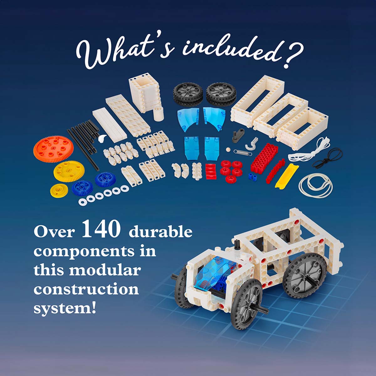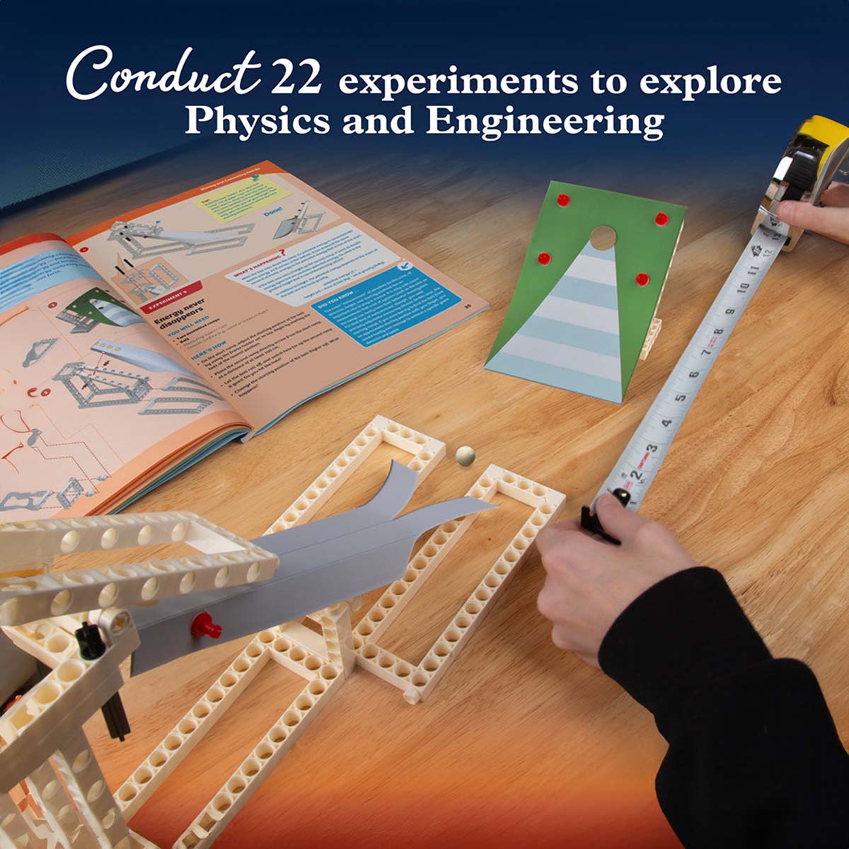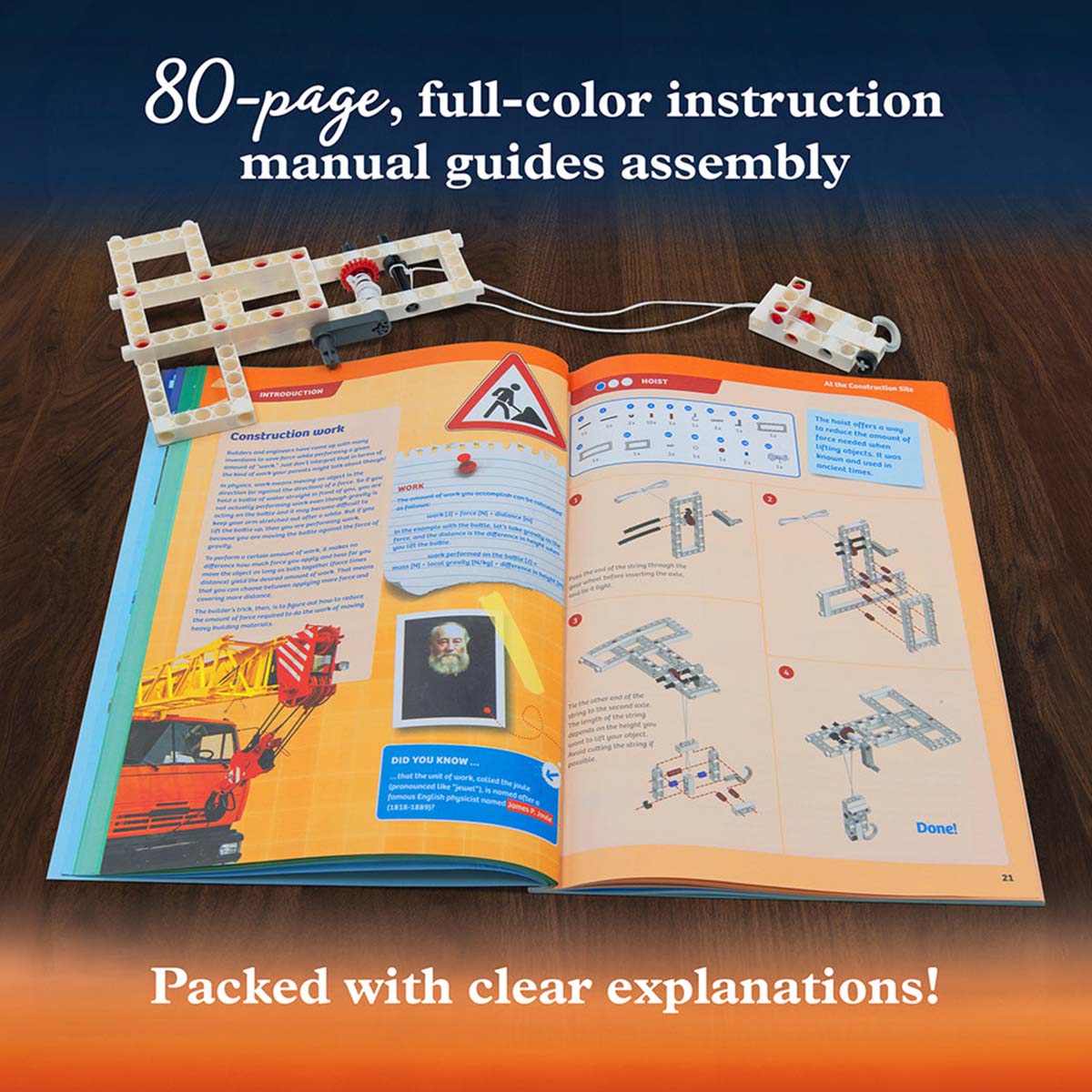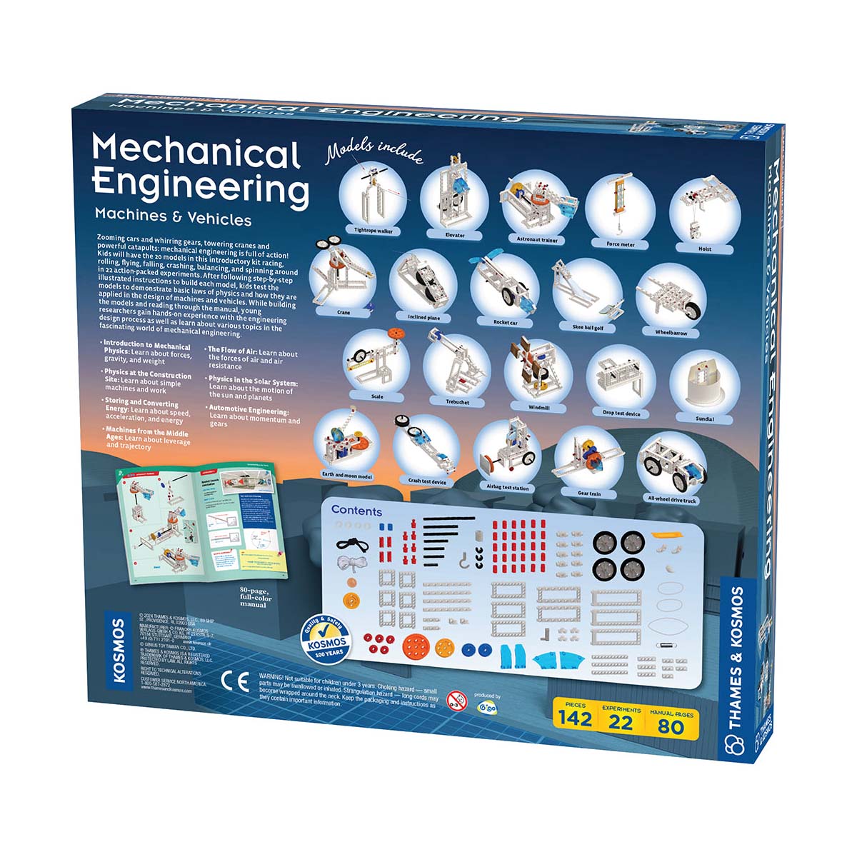 The 80-page, full-color manual provides step-by-step illustrated assembly instructions and clear, thorough explanations of the “why” and “how” of each experiment. The blend of interactive models, easily digestible facts, and real-world examples delivers a comprehensive science kit that is both entertaining and educational.