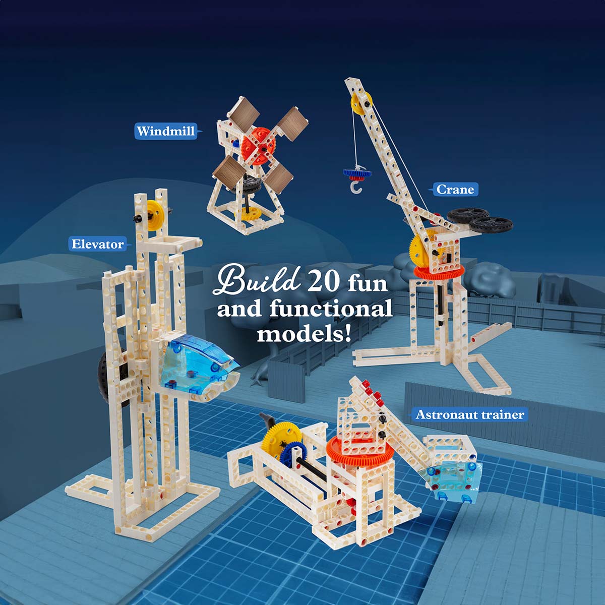 This action-packed introductory kit explores the science of machines and vehicles with 20 building projects. A durable, reusable building system can be combined and reconfigured into fun and functional models that include a tightrope walker, elevator, crane, windmill, and all-wheel drive ATV. Use the assembled models to conduct 22 hands-on experiments that demonstrate important lessons like forces, gravity, storing and converting energy.