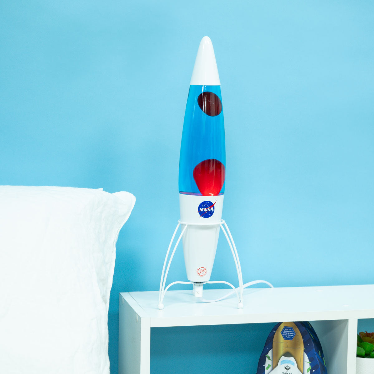 Note: Be patient! Lamps like this use the heat from a lightbulb to melt the wax. It can take a while for the wax to soften enough to start to move through the liquid. It also means the bottom of the Rocket Lamp can get very hot.